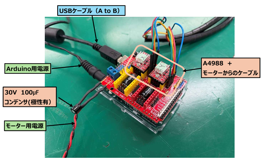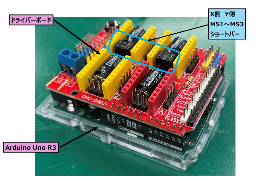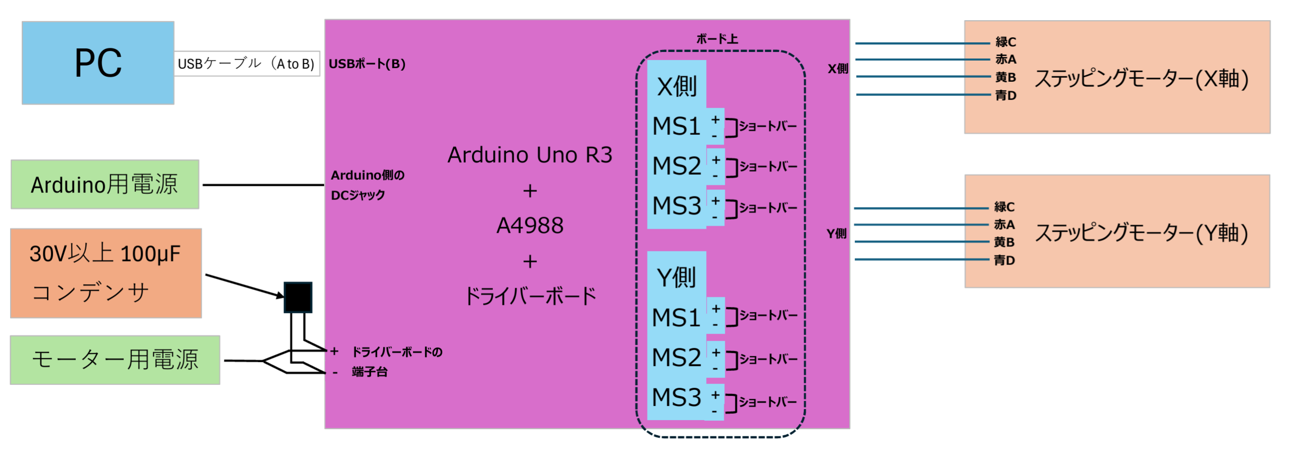 👉 Arduinoからの指示でX軸・Y軸を動作させること
