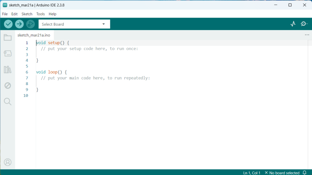 • 上部のプルダウンよりArduinoが接続されているポートを選択します。