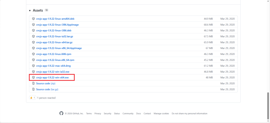• cncjs-app-1.9.22-win-x64.exeをダウンロード