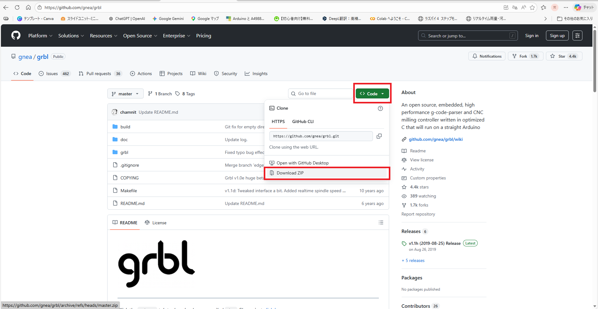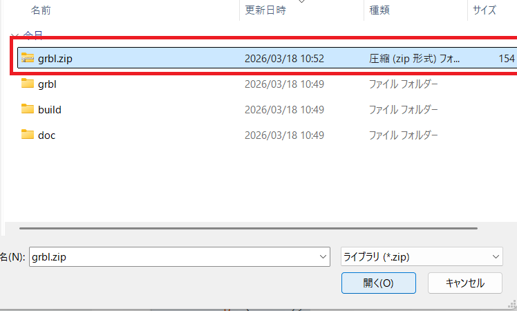 • フォルダ内の「grbl」フォルダを右クリックしてZIPに圧縮します。