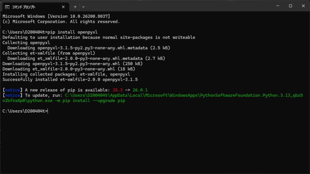 準備1:openpyxl と pywin32 のインストール