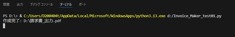 OUTPUT_PATH = os.path.abspath("請求書_出力.pdf") #変数OUTPUT_PATHに出力するPDFファイルのパスを指定。abspathで絶対パスを取得