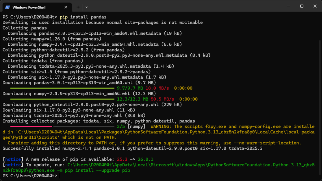 pip install pandas