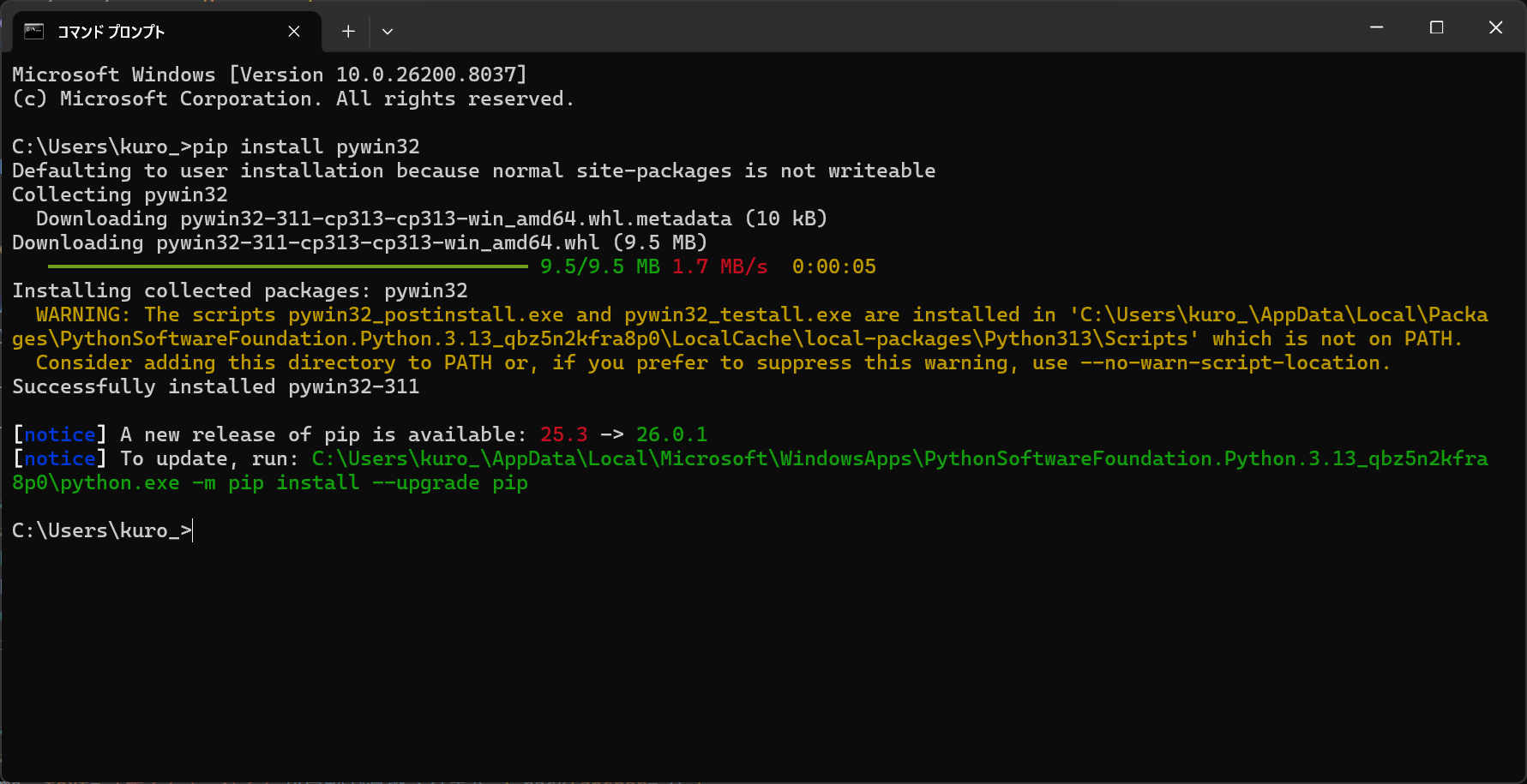 豆知識pywin32は64bit版のWindowsやPythonでも問題なく動作します。ライブラリ側で自動調整してくれるので、ユーザーは気にせず使って大丈夫ですよ!