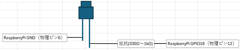 GPIO18(物理ピン12) → 抵抗 → LED長い足