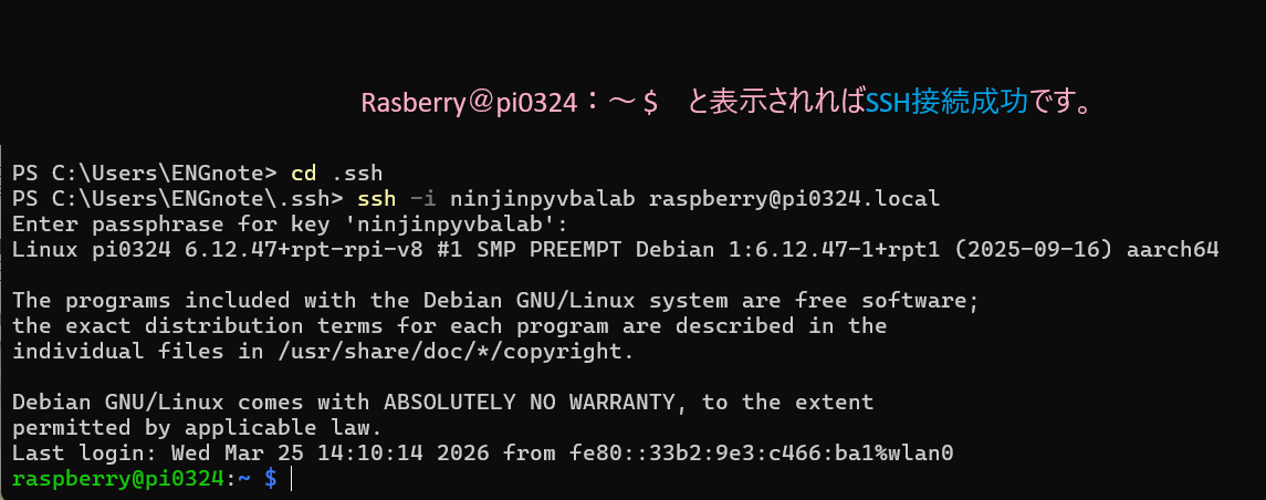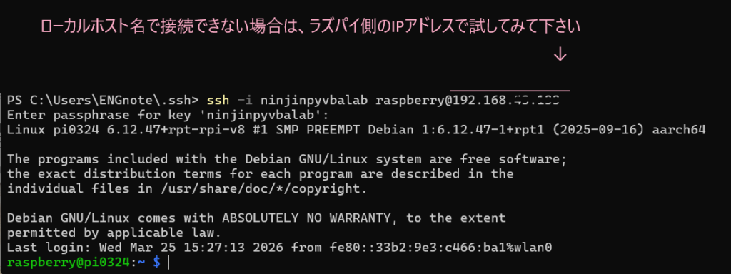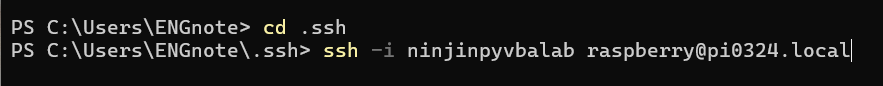 ssh -i ninjinpyvbalab raspberry@pi0324.local
