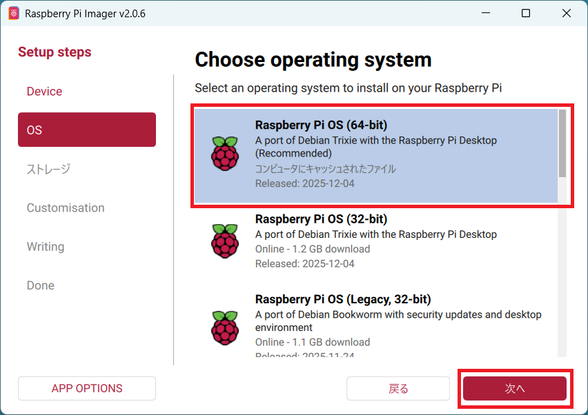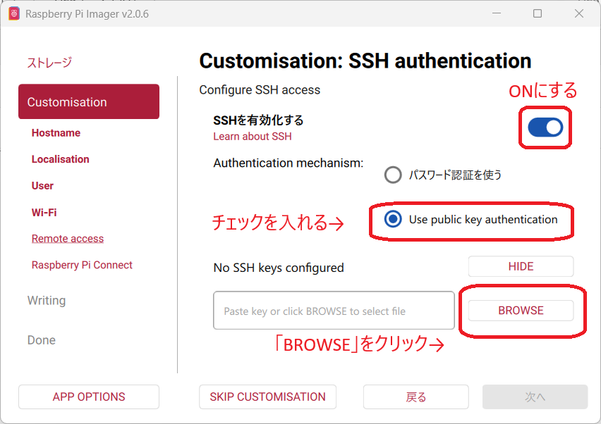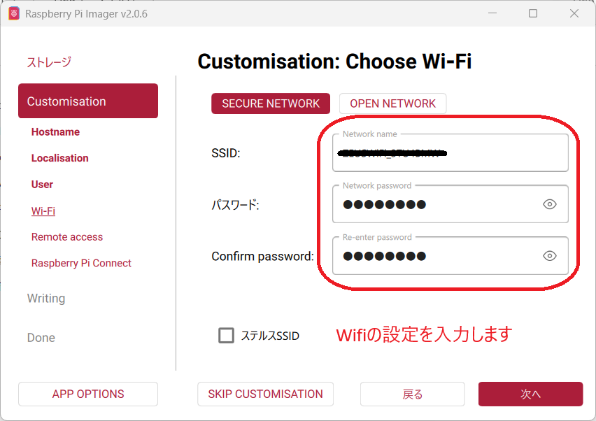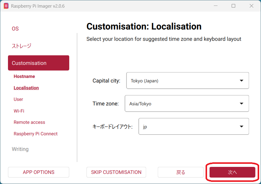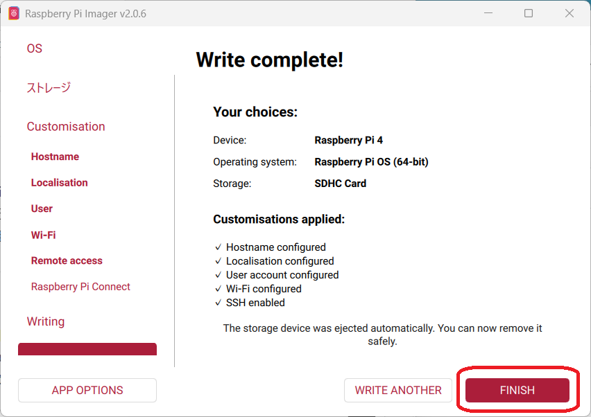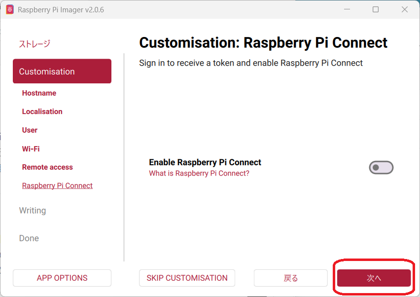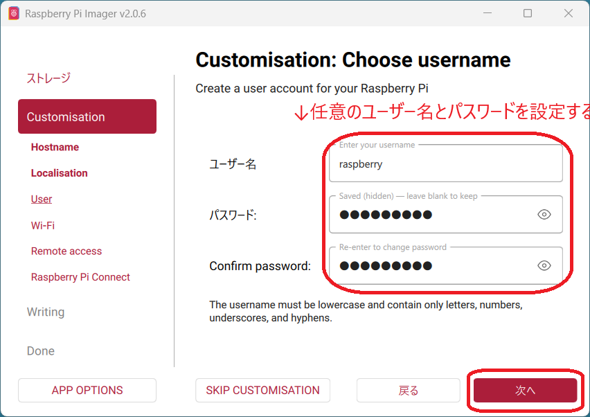 Raspberry Pi Imagerを使ってOSを書き込む際、設定をカスタマイズします。