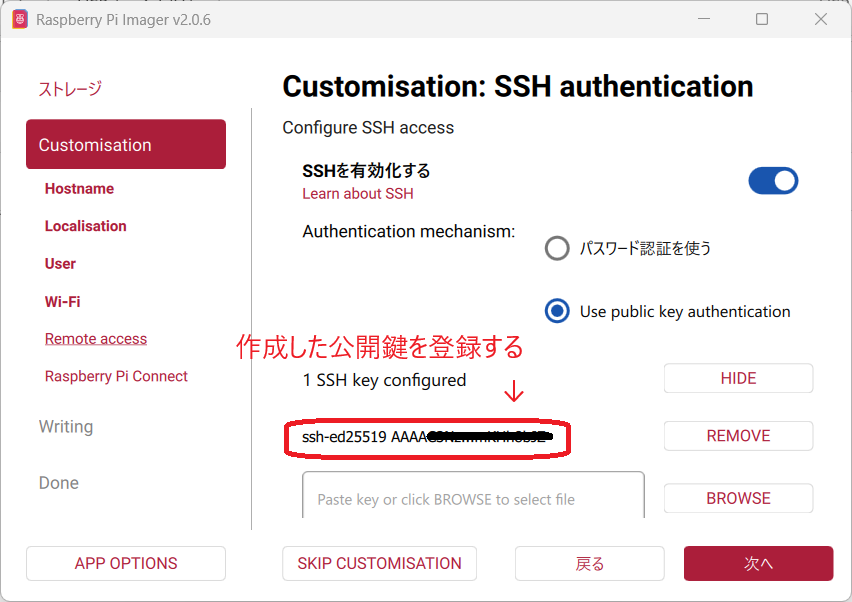 Raspberry Pi SSH接続の事前準備(公開鍵作成)