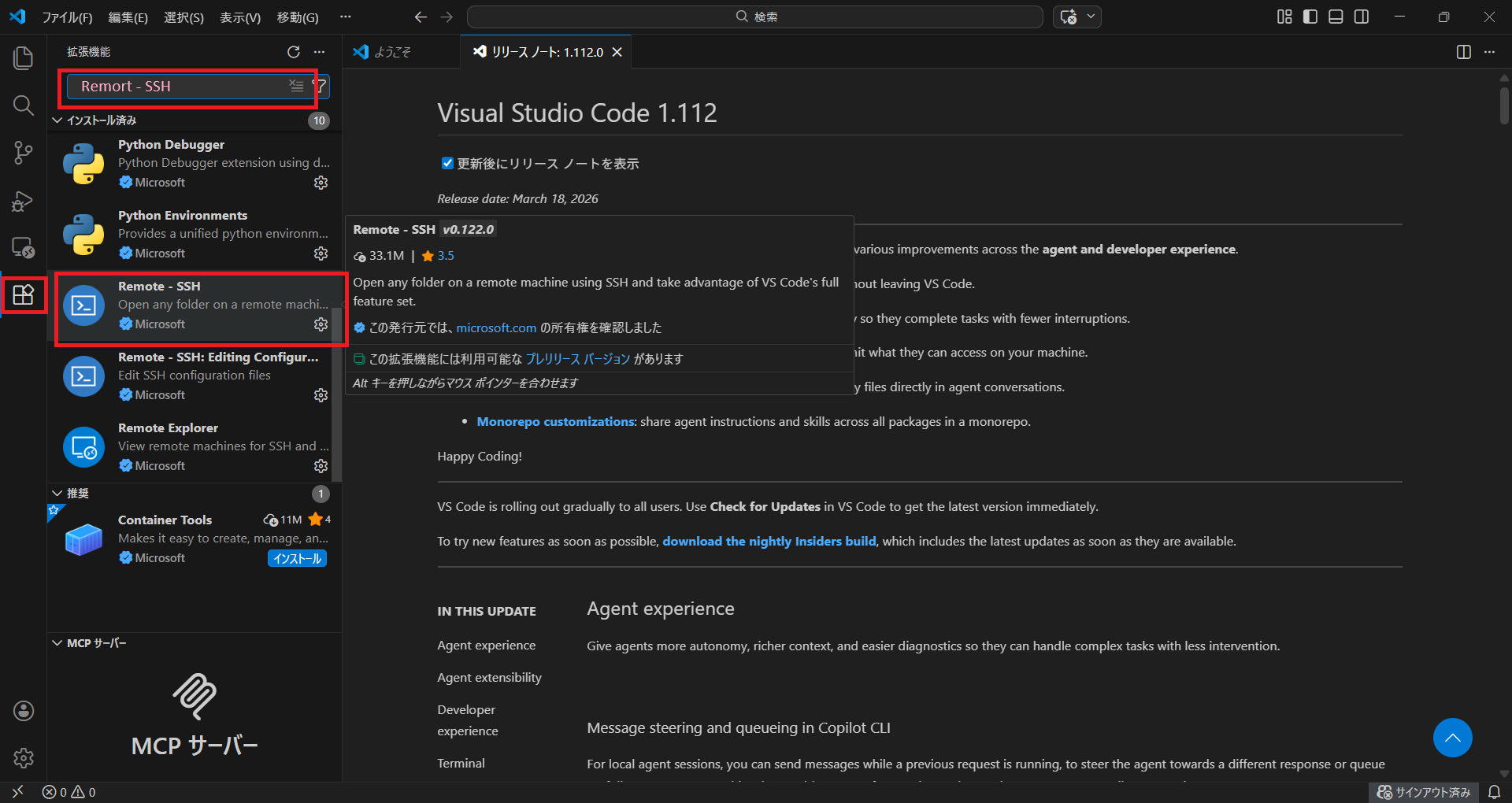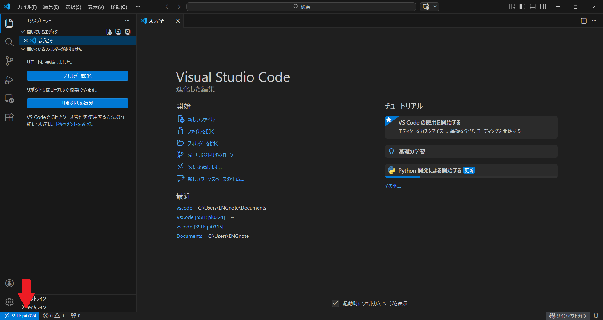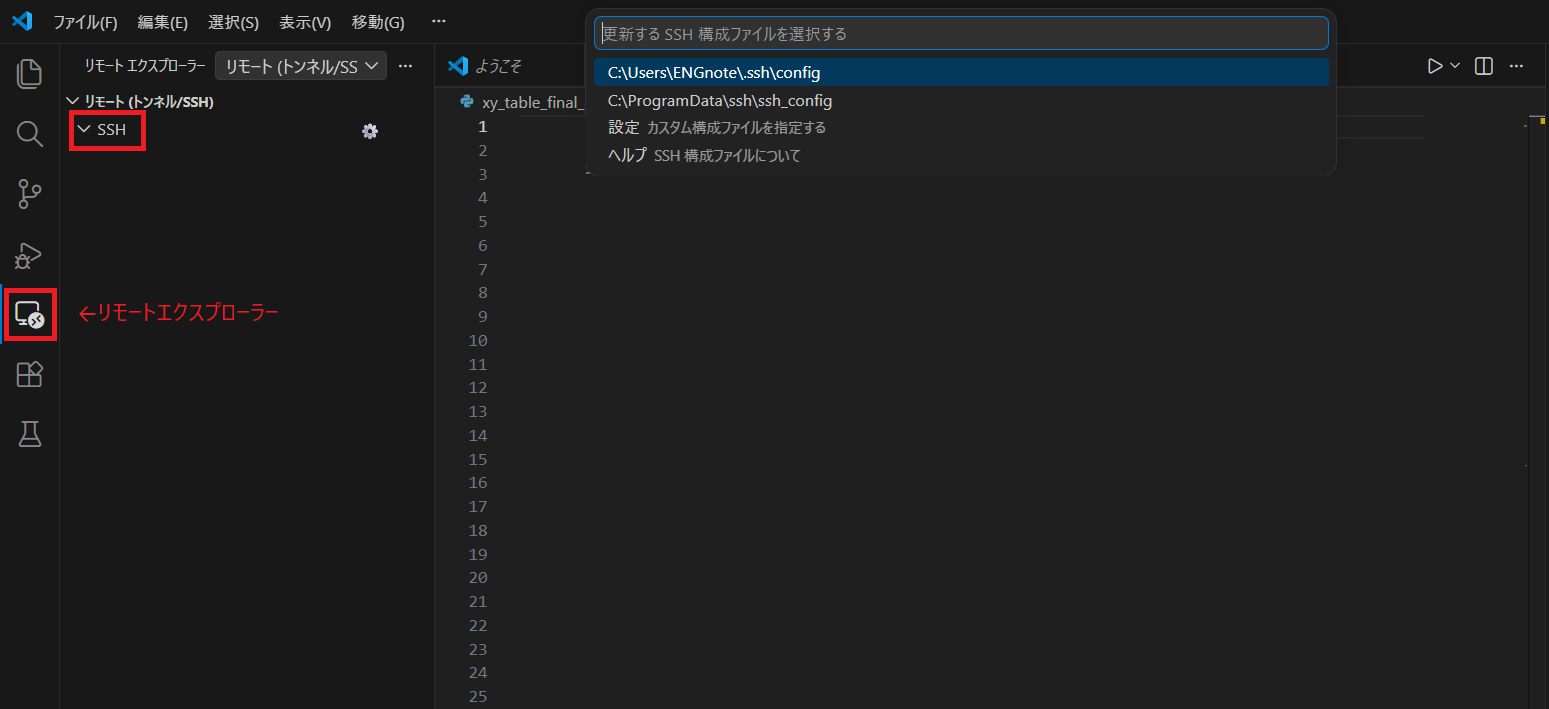 毎回コマンドを打つのは面倒なので、VSCodeの「Remote – SSH」拡張機能を使いましょう。