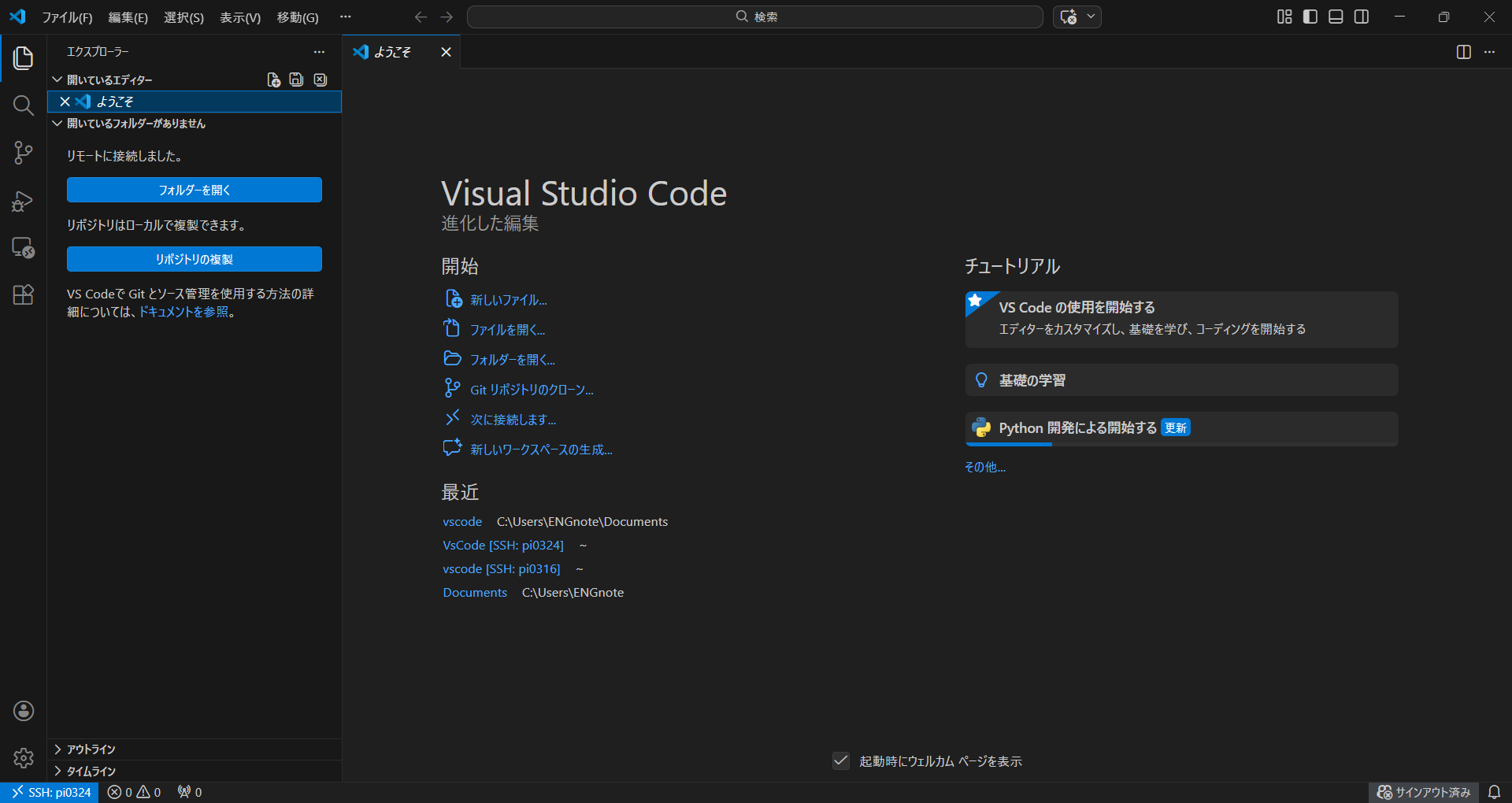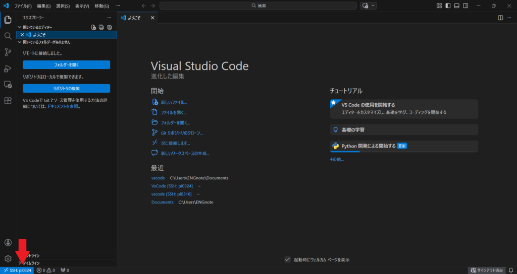 これで、PC上のファイルを編集するのと同じ感覚で、ラズパイ上のプログラムを開発できるようになります。