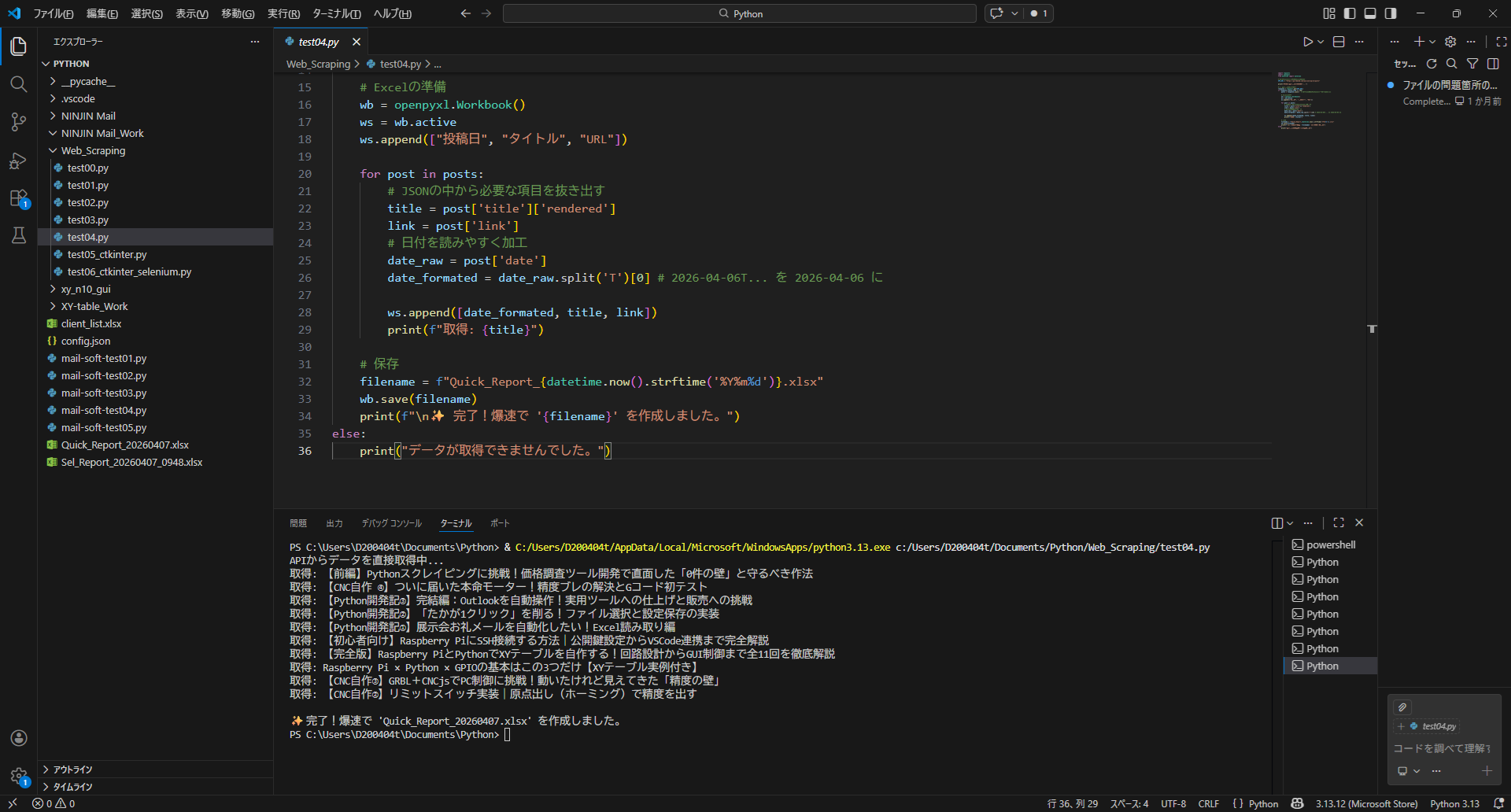 今回の教訓: 正式な窓口(API)があるならそれを使う。なければSeleniumで丁寧に。技術の使い分けこそが自動化の鍵。